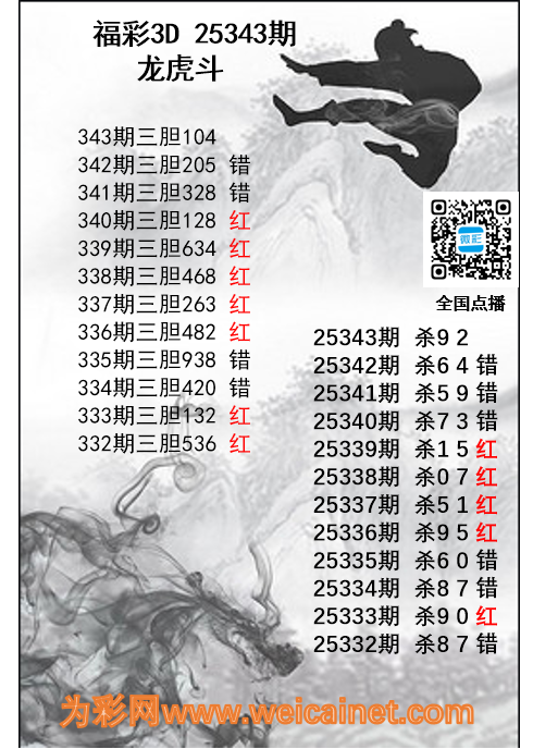 福彩3D25343期龙虎斗胆码 杀码图 发表于:2025-12-23 15:44:19 浏览次数:0 上一篇:福彩3D25343期财神送彩杀三码 下一篇:福彩3D25343期鲸落万物生胆码推荐 推荐文章
