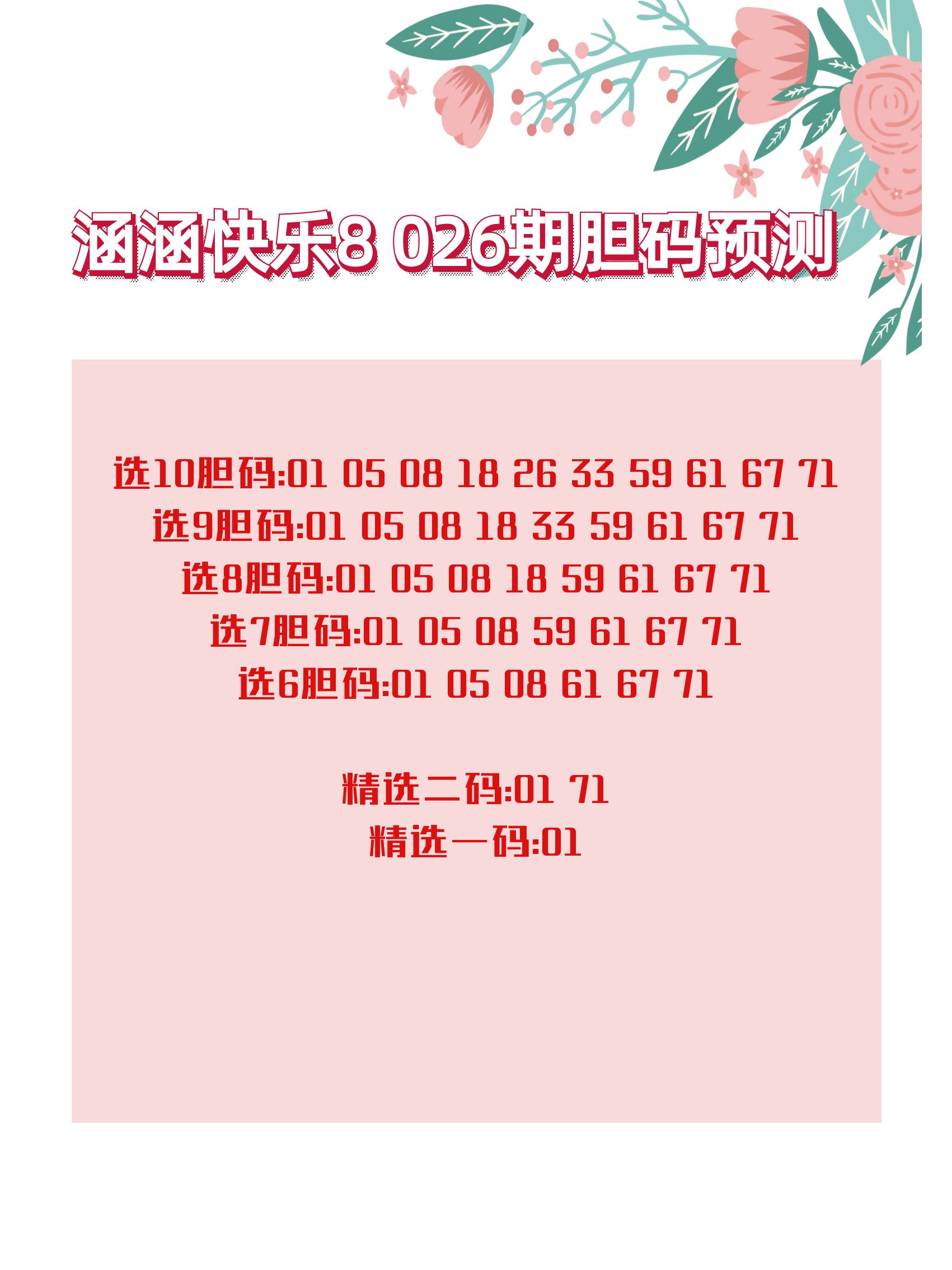 快乐8 26026期涵涵胆码图谜