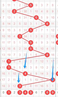 从左到右定位分析的第二位数字走势图中标注出来的数字234567把这些数字当成一个区域的话,你们看这个区域的数字一共有5个数字,已经连续5期没出现号码,那么本期这个区域开出号码的概率肯定是要高的,关注这些数字234567,个人看好这3个数字456。