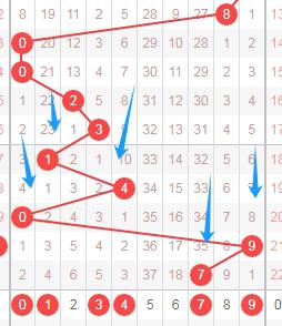 从左到右定位分析的第四位数字走势图中标注出来的数字013479,这些数字都是遗漏周期比较少的数字,你们看上面的蓝色大箭头就知道,最近开出的遗漏周期大的居多,本期关注出遗漏 周期小的数字013479,个人最看好这4个数字0134。