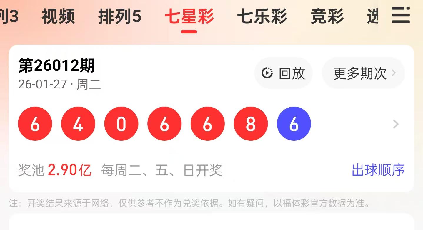 一、近期前六位开奖数据回顾(2026012–2026007)
