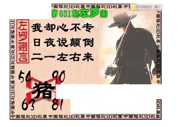 福彩3D 26031期佐罗图一掌经预测图