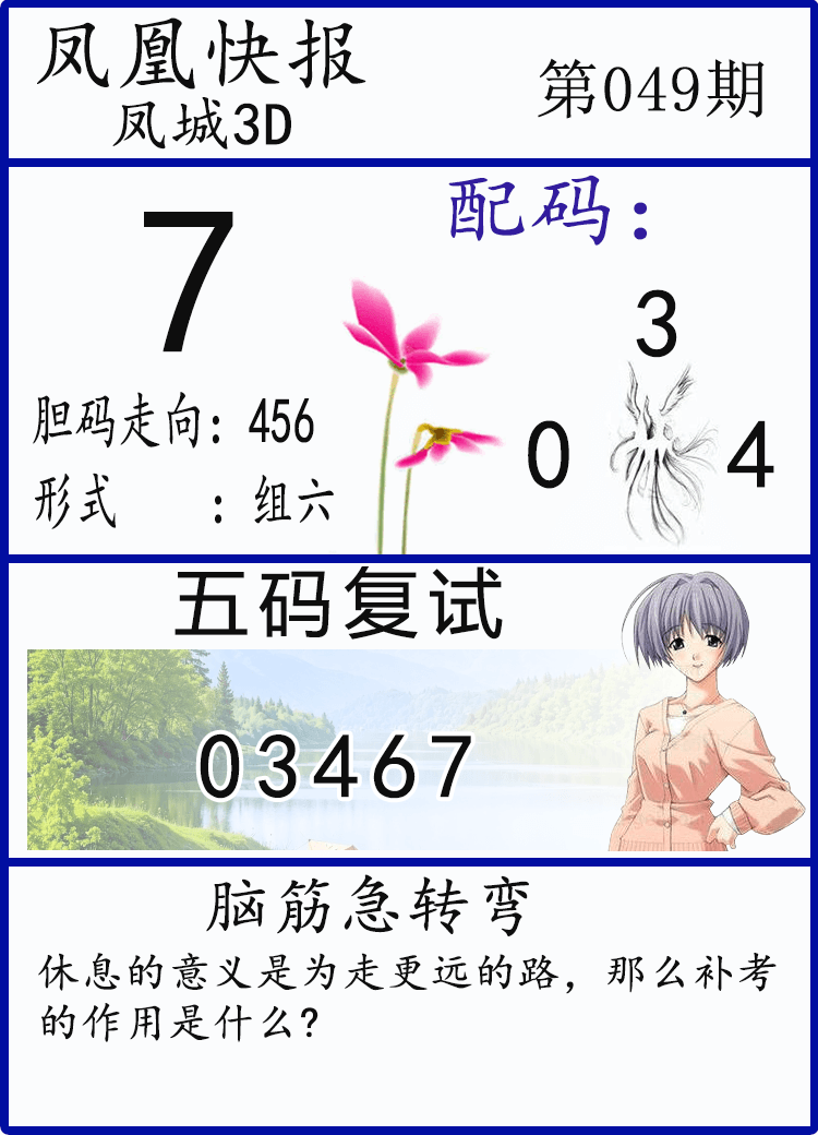26049期: 福彩3D财神精选胆码杀码 发表于:2026-02-28 12:49:44 浏览次数:0 上一篇:七星彩26022期 ,单式推荐5组,中一次就可以了 下一篇:大乐透26020期 上中3+1,前区围中12 14 31,后区围中04 推荐文章