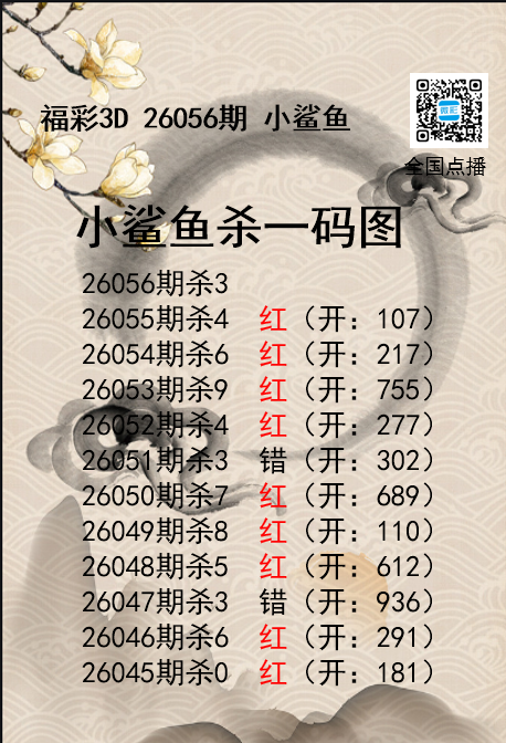 福彩3D26056期分析师小鲨鱼杀号图精选 发表于:2026-03-07 11:56:18 浏览次数:0 上一篇:福彩3D26056期码师小贝杀号图精选 下一篇:福彩3D26056期财神送彩杀三码 推荐文章