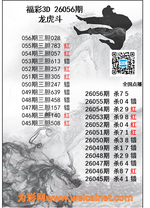 福彩3D26056期龙虎斗胆码 杀码图 发表于:2026-03-07 11:56:52 浏览次数:0 上一篇:福彩3D26056期财神送彩杀三码 下一篇:福彩3D26056期鲸落万物生胆码推荐 推荐文章