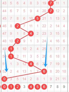 上图是体彩排列五从左到右定位第五位数字走势图,我在上面标注出来的数字都是遗漏周期小的数字012456,标注出来的蓝色箭头表示遗漏周期,上期开出数字0遗漏周期是52期,上上期开出数字6遗漏周期是27期,连续开出了两期遗漏周期大的数字,那么本期出现遗漏周期小的数字机会是有的,关注数字012456,个人最看好数字0245。