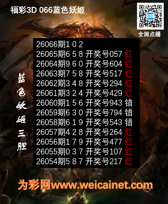 福彩3D26066期胆码 蓝色妖姬胆码图 发表于:2026-03-17 15:59:23 浏览次数:0 上一篇:胜负彩26044期欧亚市场对照:里斯本盘口存差异 下一篇:福彩3D26066期胆码 吸血鬼双胆图 推荐文章