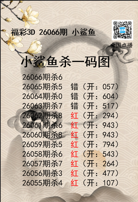 福彩3D26066期分析师小鲨鱼杀号图精选 发表于:2026-03-17 16:00:21 浏览次数:0 上一篇:福彩3D26066期码师小贝杀号图精选 下一篇:福彩3D26066期财神送彩杀三码 推荐文章