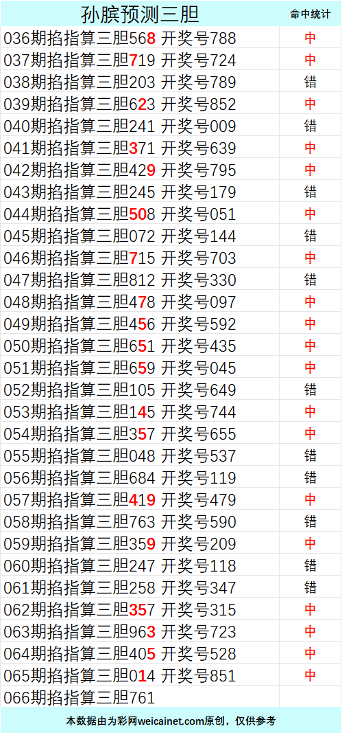 排列三26066期孙膑预测三胆