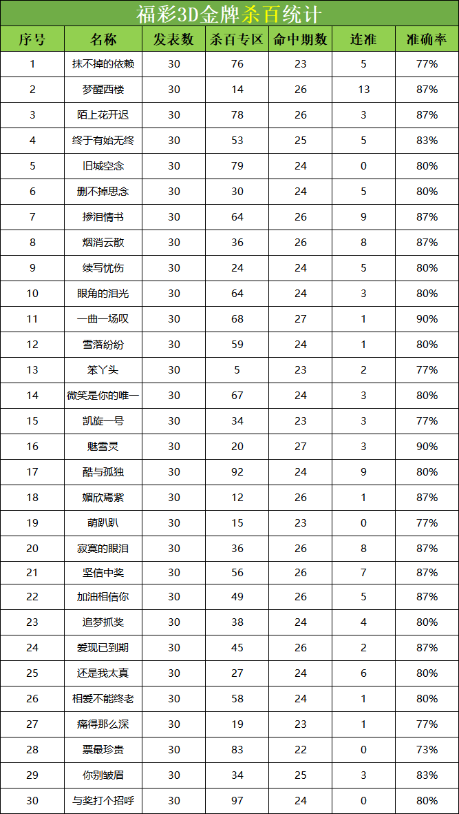 福彩3D 26066期杀码 杀百统计