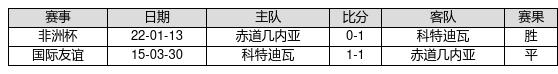 科特迪瓦 VS 赤道几内亚两队近10年的交战次数为2场,科特迪瓦1胜1平0负,赢球概率为50%,平局概率为50%,输球概率为0%。