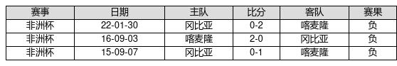 冈比亚 VS 喀麦隆两队近10年的交战次数为3场,冈比亚0胜0平3负,赢球概率为0%,平局概率为0%,输球概率为100%。