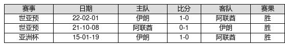 伊朗 VS 阿联酋两队近10年的交战次数为3场,伊朗3胜0平0负,赢球概率为100%,平局概率为0%,输球概率为0%。