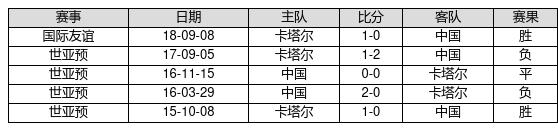卡塔尔 VS 中国两队近10年的交战次数为5场,卡塔尔2胜1平2负,赢球概率为40%,平局概率为20%,输球概率为40%。