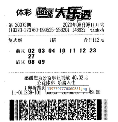 仔细查看王先生的中奖票,是一张8+2的复式票,8月7日14点多购于镇江3211011239体彩网点。该票将大乐透第20073期开奖号码囊括其中,除了中得1注974万多元的一等奖,还收获了四等奖15注、六等奖30注、八等奖10注,单票奖金总额为9793652元。