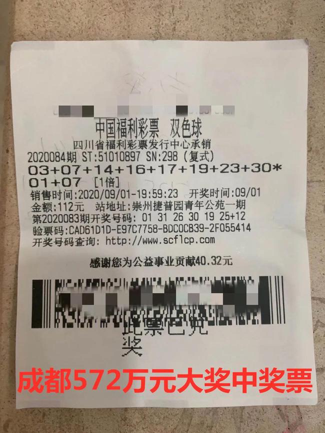 9月1日晚,双色球第2020084期开奖,开奖出红球号码03、07、16、17、23、30,蓝球号码07,我省成都市崇州捷普园青年公苑一期A区10-5号51010897号站32位彩民合买喜中当期一等奖,凭一张“8+2”的复式票一举拿下总奖金572万元,为四川彩民赢得九月“开门红”!值得一提的是,这不仅是我省彩民今年中得的第四个双色球合买一等奖,更是成都历史上第一个合买一等奖!