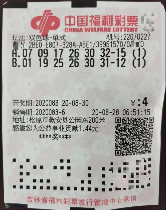 8月30日晚,中国福利彩票双色球游戏进行第2020083期开奖。当期双色球红球号码为01、19、25、26、30、31,蓝球号码为12。当期双色球头奖单注奖金为791万多元,吉林喜获1注,这注头奖被来自松原的90后张女士(化姓)斩获。