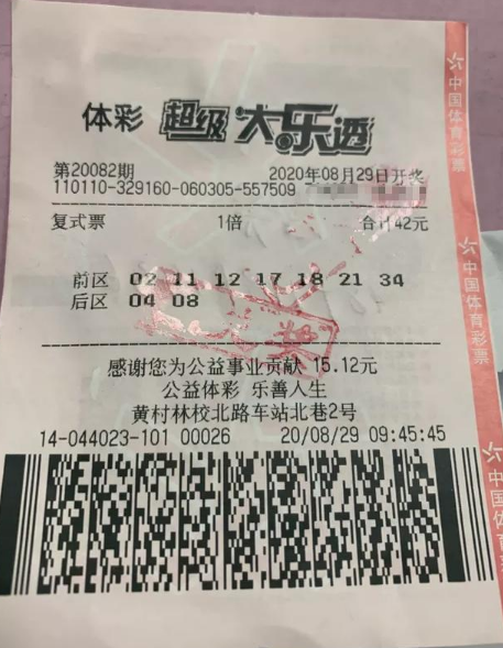 8月29日,体彩大乐透第20082期开奖,北京大兴44023体彩实体店中出1注基本一等奖,9月2日下午,中奖彩友李大爷(化姓)前往北京体彩中心兑奖大厅领取了奖金。