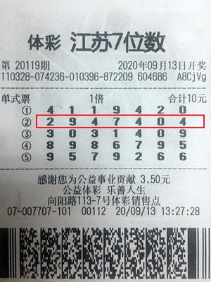 随机选号是很多购彩者乐于选择的选号方式,在江苏体彩的百万大奖榜上,有不少大奖得主是凭借随机选号中得大奖。日前,这种随遇而安的方式又为江苏购彩者送来了大奖。连云港3207007707网点购彩者于先生,凭借一张随机票,中得了9月13日开奖的江苏体彩7位数第20119期的500万元特等奖。