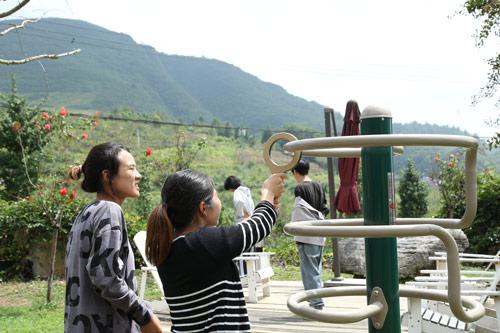 “一定要小心……不能碰到……对……就是这样……哎呀!终于过关啦……”记者采访时,花茂村村民彭虎艳正在跟一个叫做轨道式平衡器的器材“较劲”,一边做着动作,嘴里也不时给自己加着油。这个器械也是健身乐园十余种选择之中她最喜欢的游戏,主要功能是锻炼人的平衡感,协调身体各个部位,同时培养人的耐心与细心。