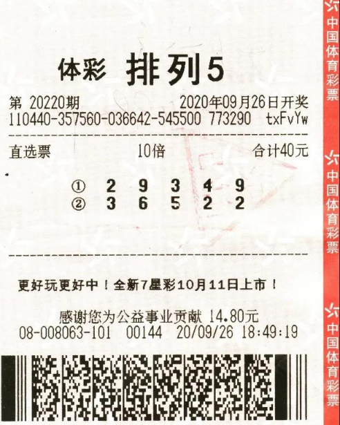 体彩排列五铁粉擒100万大奖 奖票系2注10倍投