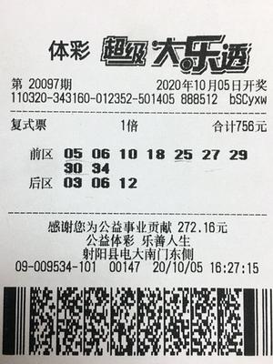 马先生出示的中奖彩票是一张“9+3”复式票,该票除了中得20097期大乐透一等奖,还中得当期二等奖2注、四等奖20注、五等奖40注、六等奖60注、八等奖160注以及九等奖85注,单票奖金合计8466558元。