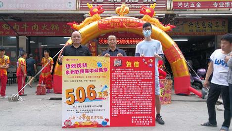 今儿咱们继续分享第四个大奖故事——泉州晋江永和镇506万元大奖。这注一等奖出自泉州晋江市永和镇英墩村商住区西路125号的福彩35057444站,中奖彩票是一张8+1复式票,总奖金506万元。10月23日上午,大奖得主张先生(化姓)现身省福彩中心领奖。
