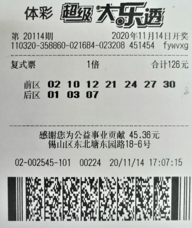 忠实粉丝126元揽大乐透781万 一直喜欢复式