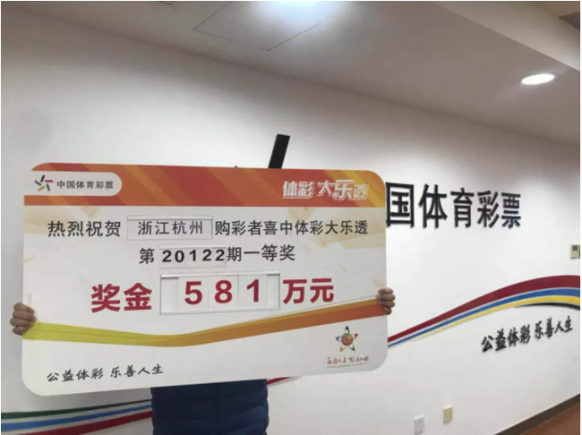 12月2日,体彩大乐透第20122期开奖,当期全国中出10注一等奖,单注奖金581万元,浙江杭州购彩者王大伯揽获其中1注一等奖。12月4日,王大伯只身一人来到浙江省体育彩票管理中心,领取了属于他的幸运奖金。