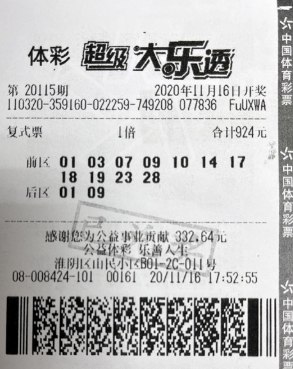 田先生带来的中奖彩票是一张“11+2”复式票,该票除中得20115期大乐透一等奖外,还中得当期四等奖30注、六等奖150注、八等奖200注和九等奖81注,单票总奖金5981540元。