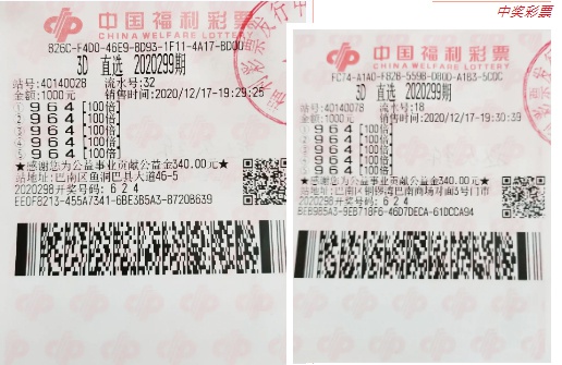 12月17日,巴南区铜锣湾巴南商场对面福彩40140078号站中出3D大奖52万元,巴南区鱼洞巴县大道40140028号站中出3D大奖52万元。两个大奖于同一天内“诞生”,中奖金额相同,又都出自巴南区……正当众人纷纷猜测大奖得主是否为同一人时,12月18日,胡先生(化姓)戴着口罩走进重庆福彩综合服务大厅,递出两张3D中奖彩票,谜底被揭晓。