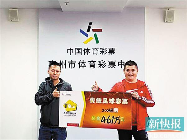 新快报讯记者陆妍思报道近日惠州市体彩中心为仲恺高新区康城四季二期的4411030473体彩实体店举行了颁奖仪式庆贺该店在第20068期足彩14场胜平负玩法开奖中中出461万元大奖。