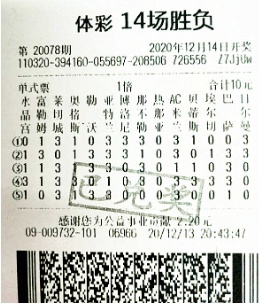 足彩的奖金高低和竞猜难度相辅相成,达到百万级奖金的比赛竞猜难度极大,如他这次中出的胜负彩20078期,法甲的大巴黎主场翻车,英超双雄热刺、利物浦被双双逼平,即便如此胡先生还是幸运的猜中所有赛果斩获了当期头奖。