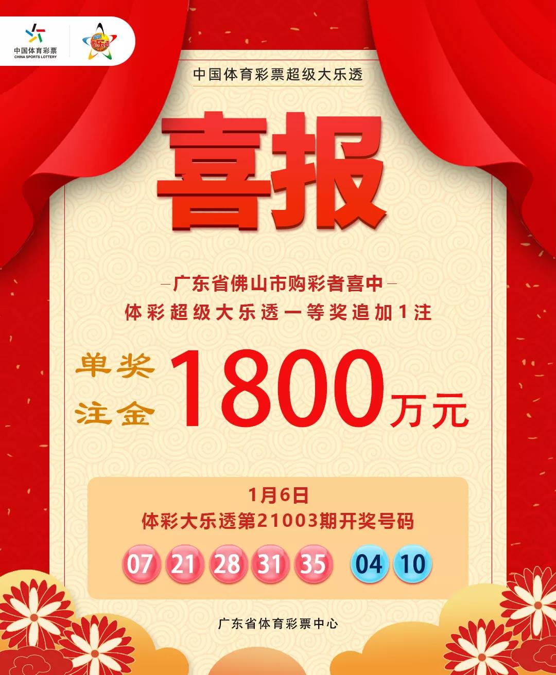 佛山再揽1800万大奖