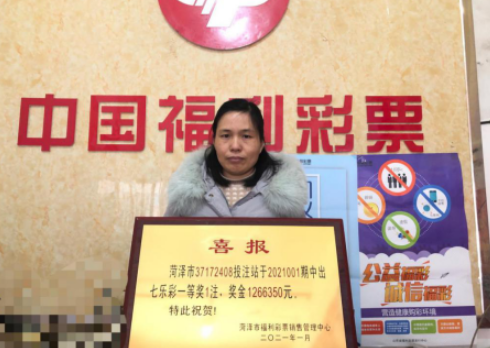 据检索,这注一等奖出自一张额6元的自选单式票,中奖彩票中得1注一等奖和1注七等奖,奖金合计1266355元。中奖彩票诞生在菏泽市成武县供电局对过37172408号销售网点。