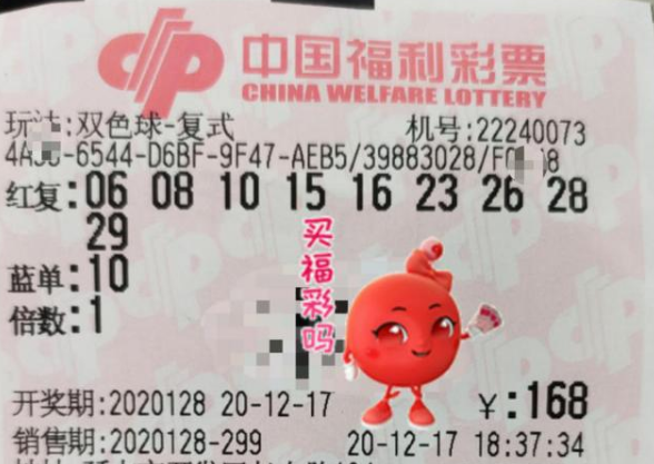 男子168元中双色球1075万 奖号根据家人生日组合
