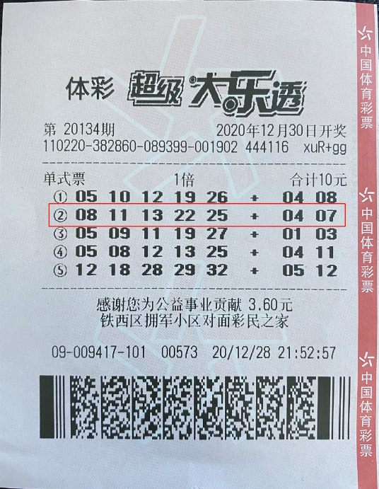 在2020年即将结束的倒数第二天,吉林省四平市购彩者喜中大乐透一等奖,奖金766万元,这是我省体彩自进入2020年12月以来的第三个大奖。