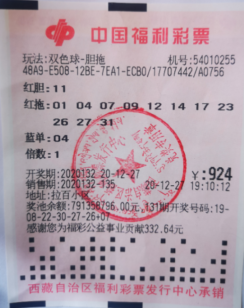 男子擒双色球1012万 创西藏福彩***高金额大奖