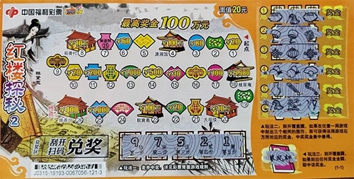 第一次玩刮刮乐“红楼探秘”,小夏觉得特别有趣。刮刮乐“红楼探秘”票面图案设计精美,整张票好比大观园游览图,红楼十二钗的驻地———潇湘馆、稻香村、龙翠庵等均设计在票面当中。玩法采用闯关跳格的形式,刮开覆盖膜,出现第一步至第五步的数字,从“起点”开始,“走”五步,就有可能轻松获取100万的巨奖。