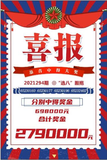11月4日,福彩“快乐8”游戏2021294期开奖,昌吉州彩市沸腾了,玛纳斯县65230177、65232402投注站,呼图壁县65230196、65230160投注站同时传出分别有彩民喜中“快乐8”69.8万元的喜讯。昌吉州一下中出4个大奖,大家都在为4位幸运彩民高兴,不曾想,来兑奖的却只有一位彩民。