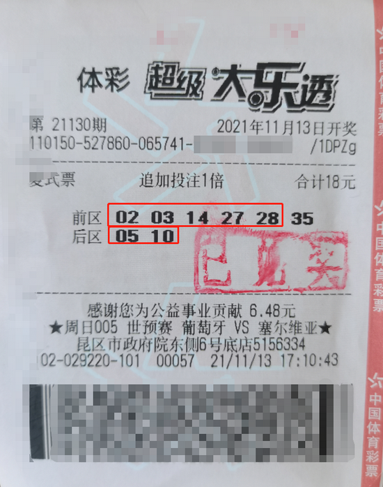 11月13日,超级大乐透第21130期开奖,当期全国共开出14注一等奖。何先生的一张18元追加复式票,收获1注追加一等奖及一系列小奖共中得奖金1286万余元。