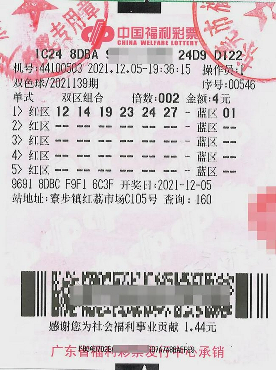 12月5日,“双色球”第2021139期开奖,当期全国中出一等奖14注,单注奖金749万余元。经检索,广东中出2注一等奖花落东莞市。差点就错过大奖东莞寮步彩民凭借一张4元1注2倍投单式机选票揽获总奖金1498万多元的双色球大奖。就在大奖中出一个星期后,大奖得主赖先生(化名)终于在儿女陪同下在12月13日下午来到东莞市福彩中心兑奖。