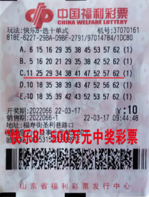 3月17日,快乐8第2022066期开奖,山东彩友幸运获得1注“选十中十”大奖,单注奖金500万元!大奖花落潍坊!一时间,中大奖的好消息迅速传遍了彩友圈,大家纷纷赞叹彩友的好运气!