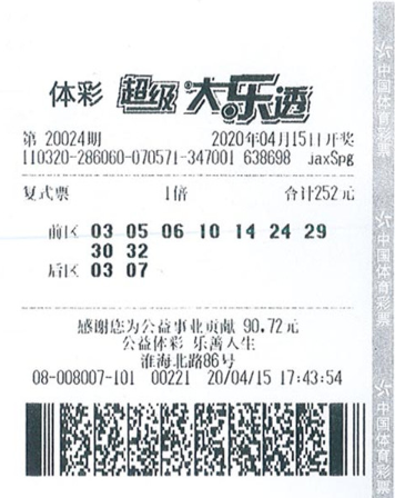 孙先生带来的中奖彩票是一张“9+2”复式票,4月15日购于淮安3208008007体彩网点。该票中得当晚开奖的20024期大乐透一等奖1注、四等奖20注、六等奖60注、八等奖40注和九等奖5注,单票总奖金9882927元。孙先生表示,他购买大乐透彩票已有7、8年时间,一直都是自己选号、复式投注。这次的中奖彩票,号码也是孙先生自选的,当天他走进网点后,简单看了一下近期开奖号码,就报出了这组号码请销售员打票,过程也就几分钟。当晚,孙先生看到开奖公告就知道自己中了一等奖,他暗自高兴了一阵,便淡定地忙自己的事去了。