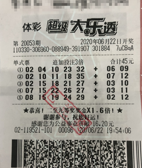 6月22日是大乐透第20053期的开奖日。当天晚上,余先生像往常一样来到位于宁波鄞州五乡镇五乡北路816号的3302119521体彩实体店。在当期销售截止前6分钟,他匆匆投注了一张追加投注3倍的单式票,号码是根据走势研究出来的。这张面值45元的追加票成功命中当期3注追加二等奖。