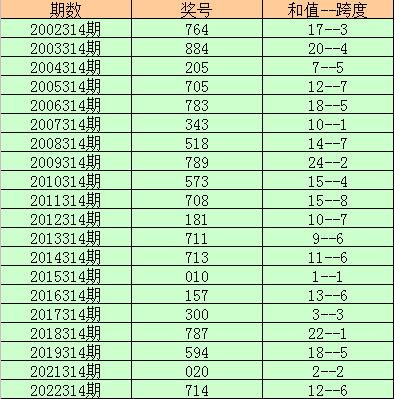 2022314期开奖号码:714