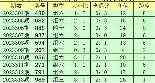 上期回顾:福彩3D第2023313期奖号:989。