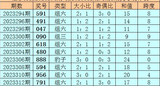 其中大小比3:0,奇偶比2:1,和值26,跨度1。