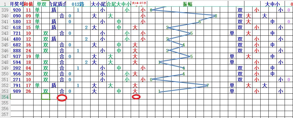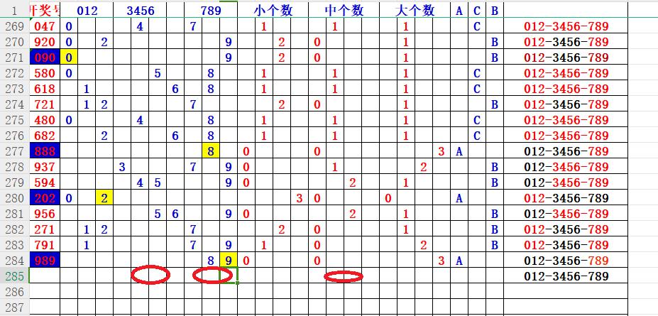 如上图7,012路分析-2路出号的概率还是很大,本期可以从2路号入手,也就是5数,5代表89。