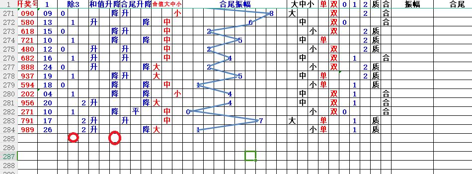 如上图3,和尾升降平来分析,和尾升的概率大,关0以上的尾数;例如:789尾。
